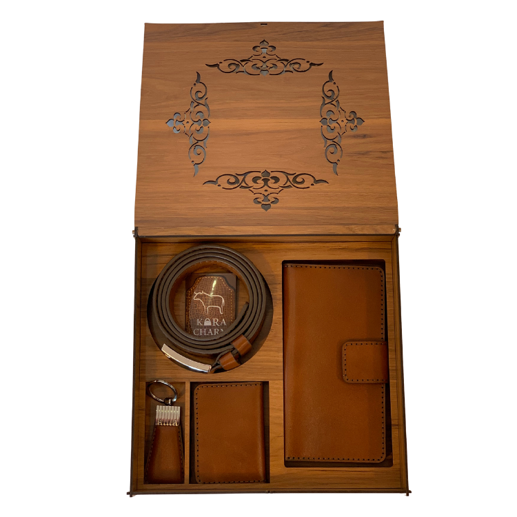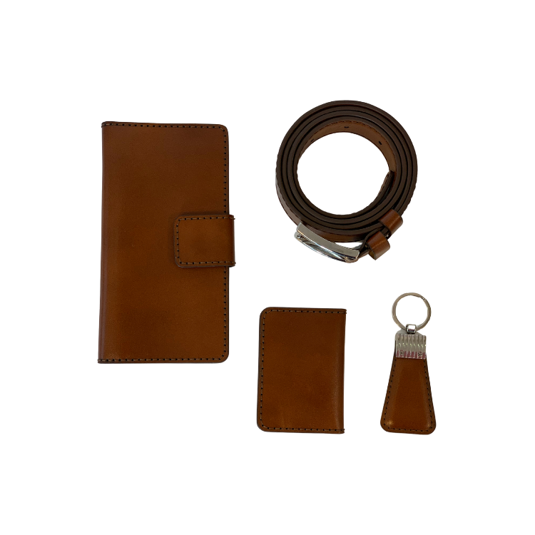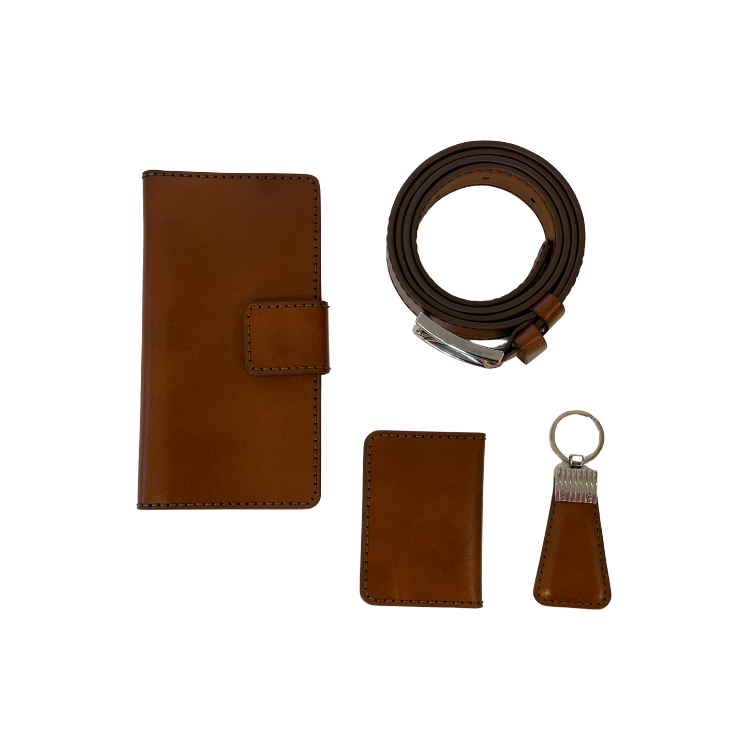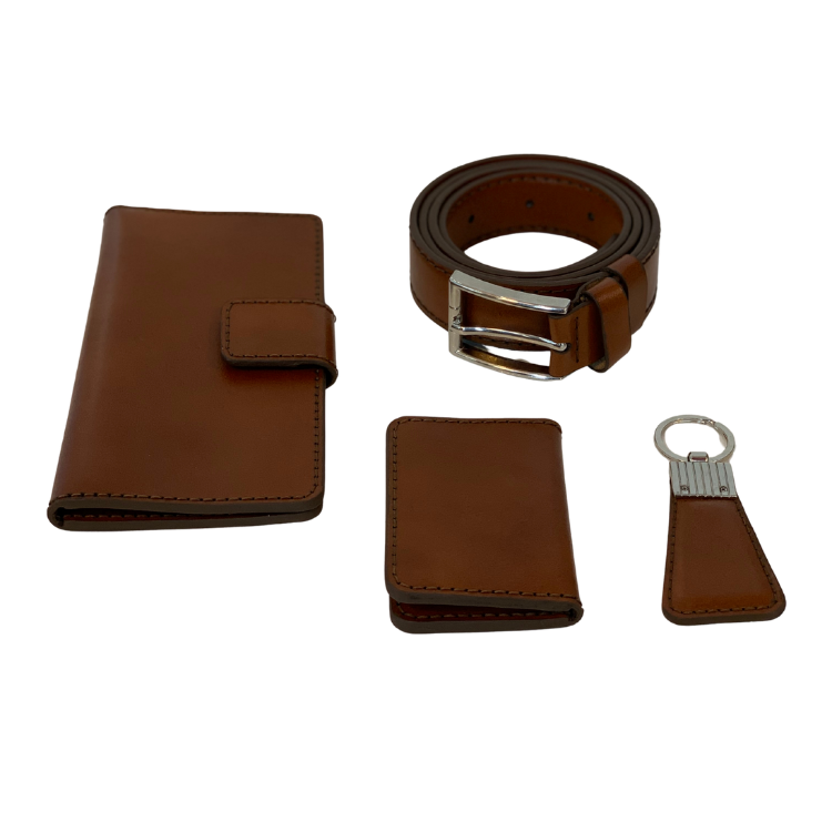 ست مردانه چرم اصل گاوی مدل ساده قهوه ای