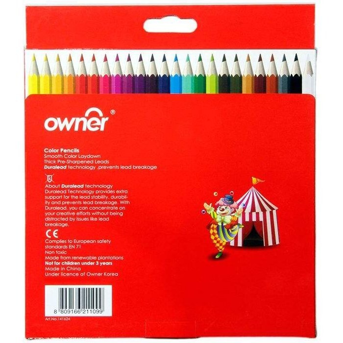 محصول حاضر شامل 24 رنگ از مداد رنگیهای «اونر» (Owner) است. این مدادها دارای بدنهای با طراحی ششضلعی و ارگونومیک هستند. این بدنه در صورت استفادهی طولانی مدت آسیبی به دست نخواهد زد. با این مداد رنگی کودک قادر است ساعتهای طولانی بدون خستگی به نقاشی بپردازد. علاوه بر این زاویهدار بودن این مدادها از لیز خوردن مداد در دست و روی میز جلوگیری میکند. نوک این مدادها در برابر فشار بسیار مقاوم است و به راحتی نمیشکند. در بستهبندی فلزی و محکم این محصول، هر مداد رنگی جای مخصوص به خود را دارد. این ویژگی از ایجاد بینظمی در جعبه جلوگیری میکند. در این جعبه به صورت لولایی و بسیار آسان باز میشود. اغلب کودکان از بازی کردن با رنگها و ترکیب کردن آنها لذت میبرند. پدر و مادر با کمی دقت بیشتر در نقاشی کودک میتوانند تا حد زیادی با روحیه، احساسات و علاقمندیهای او آشنا شوند. به نظر میرسد بسیاری از کودکان هر آنچه را که با زبان نتوانند بیان کنند، در غالب نقاشیهای خلاقانه خود نشان میدهند. اشکال استفاده شده در نقاشی، بزرگی و کوچکی عناصر نقاشی نسبت به یکدیگر، نحوه و نوع کاربرد رنگها ، همه و همه میتوانند نشانهای از وضعیت روحی کودک در آن لحظه و مکان باشند. کودک میتواند از ابزارهای متفاوتی برای نقاشی استفاده کند و مداد رنگی یکی از پرطرفدارترین این ابزارها در میان کودکان است. مدادی نرم با رنگهای متنوع و با حرکتی روان بر روی کاغذ. ترکیب کردن این رنگها و کشف رنگی تازه میتواند برای هر کودکی جذاب و هیجان انگیز بوده و راه شکوفایی خلاقیت کودک را باز کند. بنابراین فراهم کردن فرصت و امکان بروز این خلاقیت برای کودک امری مهم به نظر میرسد. از همین رو انتخاب ابزار نقاشی به عنوان هدیه برای کودک، نشان هوشمندی پدر و مادر است.
