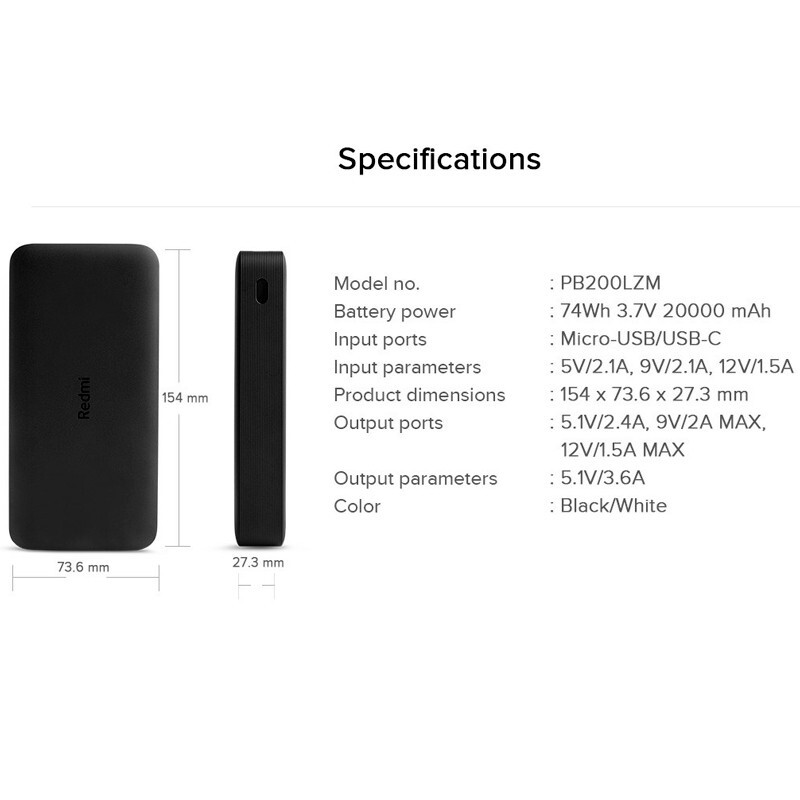 پاوربانک فست شارژ 20000 شیائومی Xiaomi Redmi PB200LZM 18W