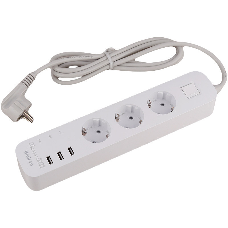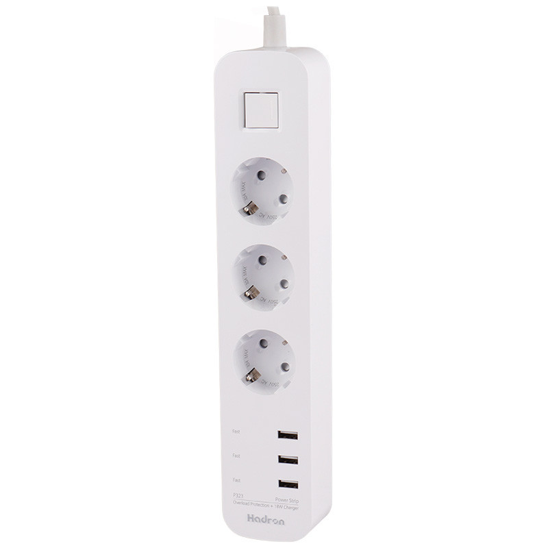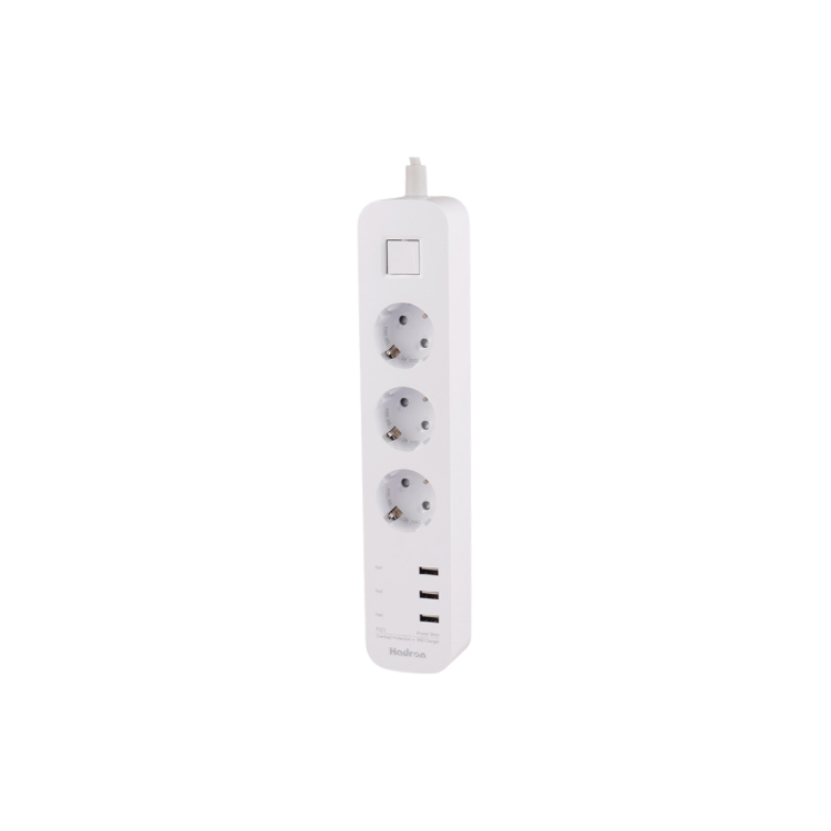 چند راهی 3 خانه برق ارت دار هادرون P323 با کابل 1.8 متری + شارژر USB